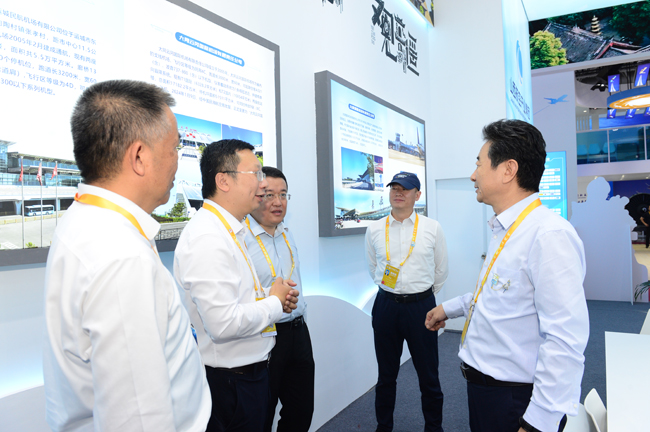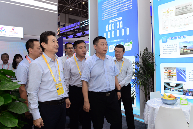 開幕式后,中國民用航空局副局長、黨組成員馬兵帶領相關人員一同參觀了山西航空產(chǎn)業(yè)集團展臺,詳細了解了航產(chǎn)集團的發(fā)展歷程、太原機場三期改擴建工程的最新進展、太原武宿零碳機場項目以及所轄各機場和通用航空的發(fā)展概況。