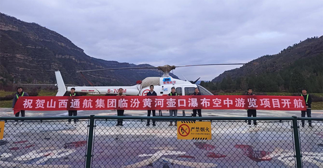 11月14日,通航集團正式啟動臨汾壺口瀑布空中游覽項目。該項目采用貝爾505直升機機型,從景區(qū)停車場起飛,帶領(lǐng)游客空中俯瞰“千里黃河一壺收”的壯觀景色,為山西黃河文化旅游發(fā)展增添了一抹新亮色。